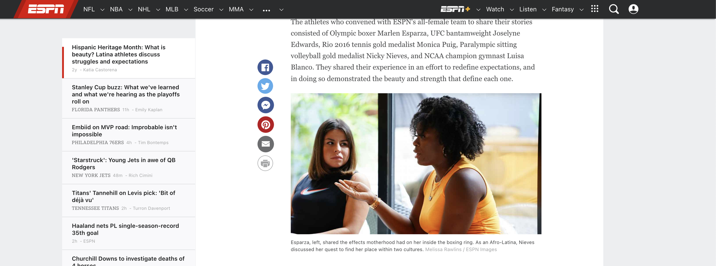 Moderated by ESPN Deportes’ Katia Castorena, Somos Latinas features a candid discussion about body image, cultural notions about hair, and the experience of motherhood. The panel includes Olympic gold medalist Mónica Puig, Paralympic gold medalist Nicky Nieves, Olympic bronze medalist and WBC Flyweight champion Marlen Esparza, SEC Gymnast of the Year Luisa Blanco, and UFC fighter Joselyne Edwards.