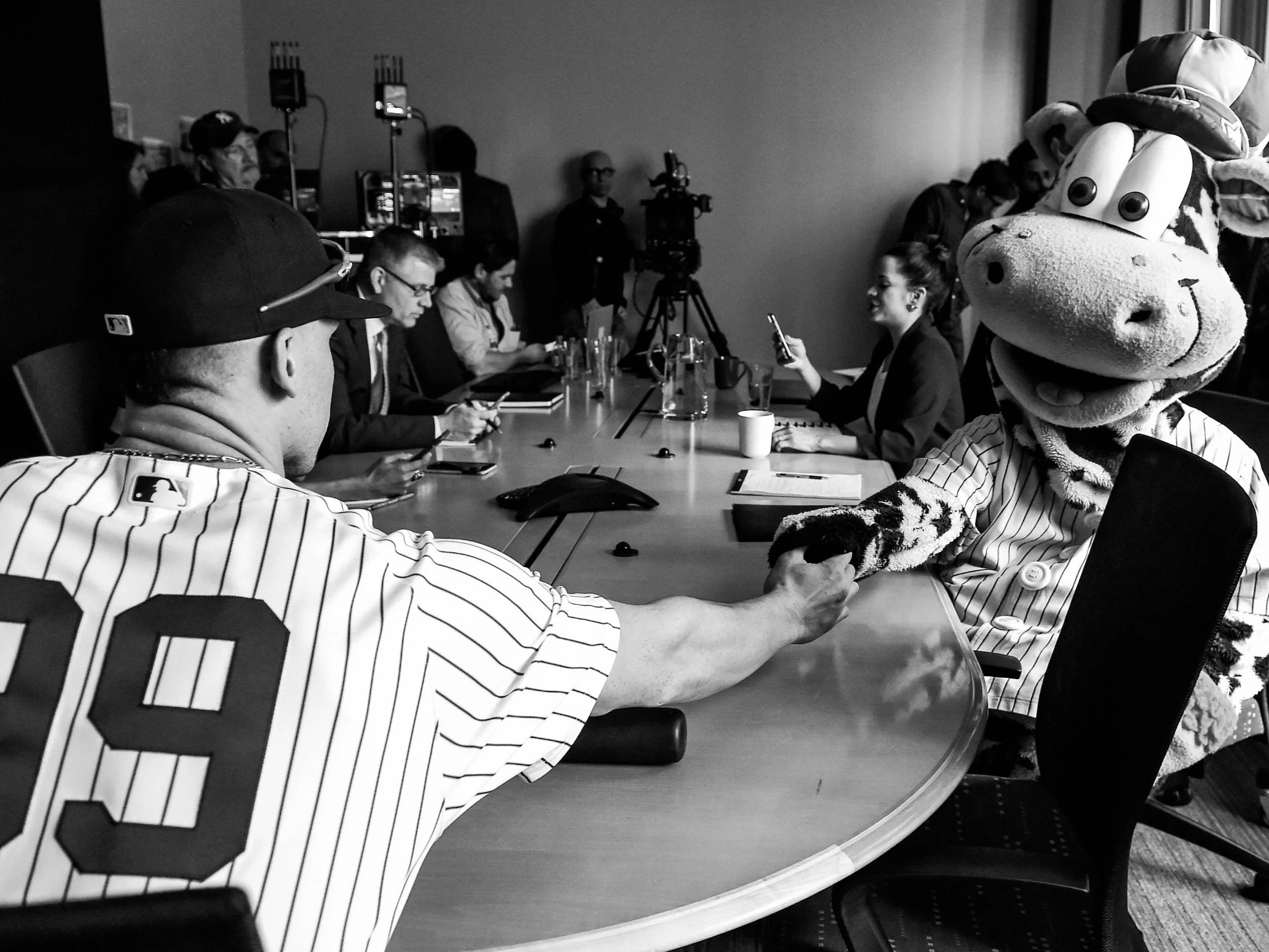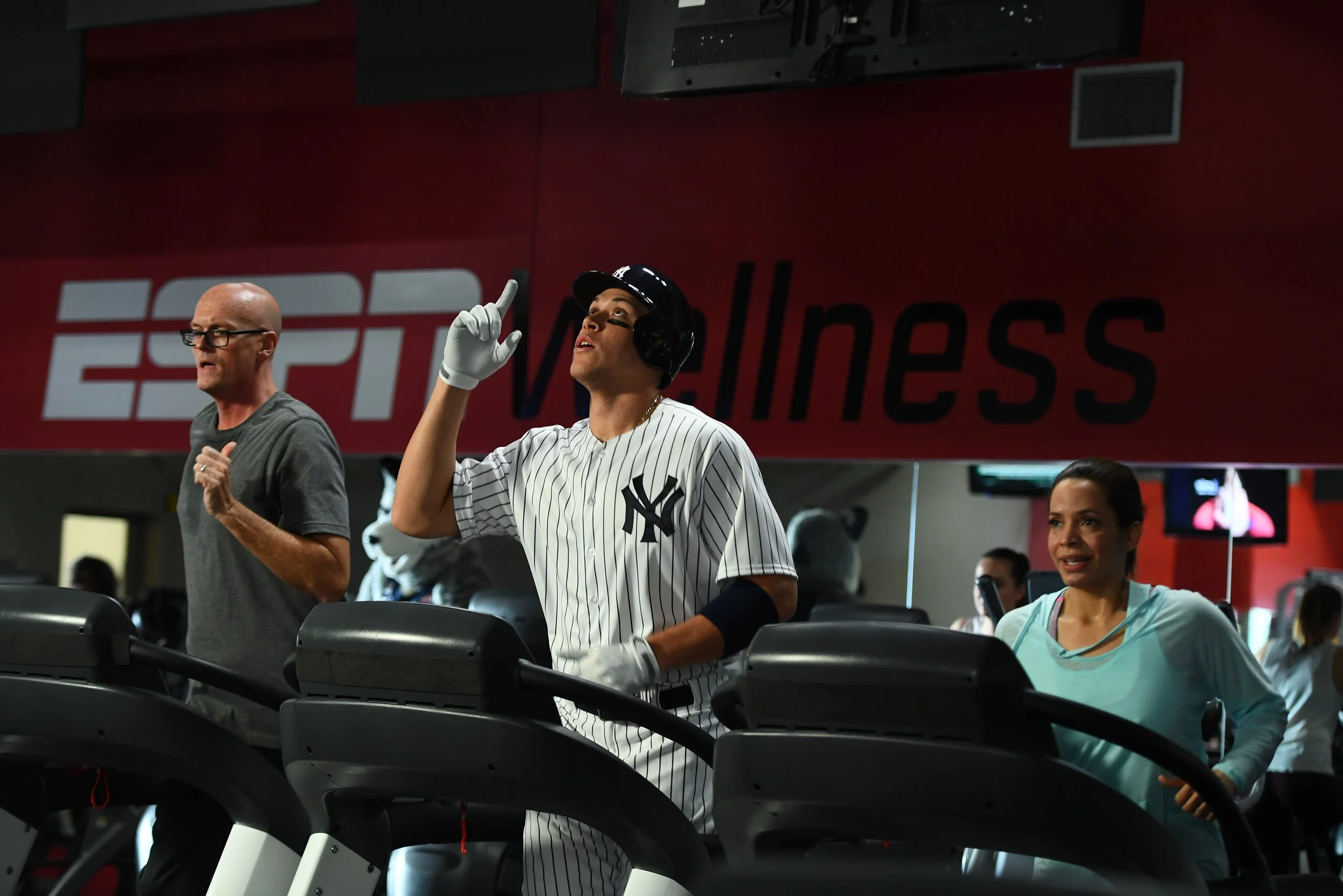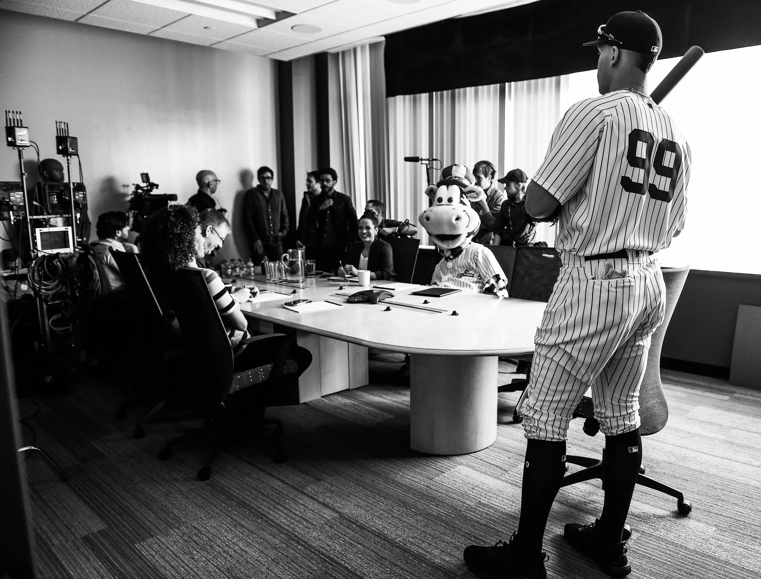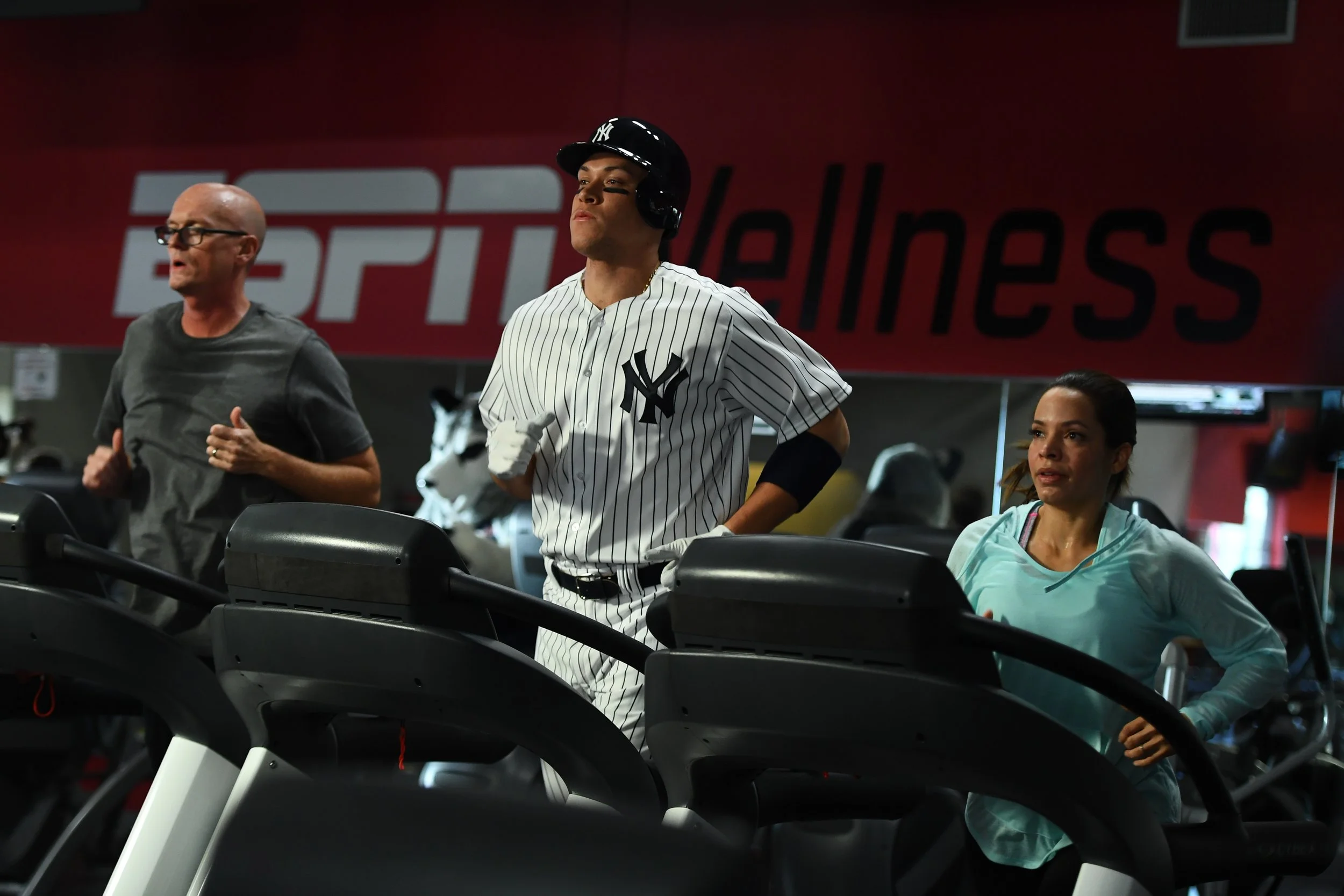 This is SportsCenter Campaign commercial shoot with Yankee’s Aaron Judge, ESPN on-air talent Scott Van Pelt and Elle Duncan at ESPN.